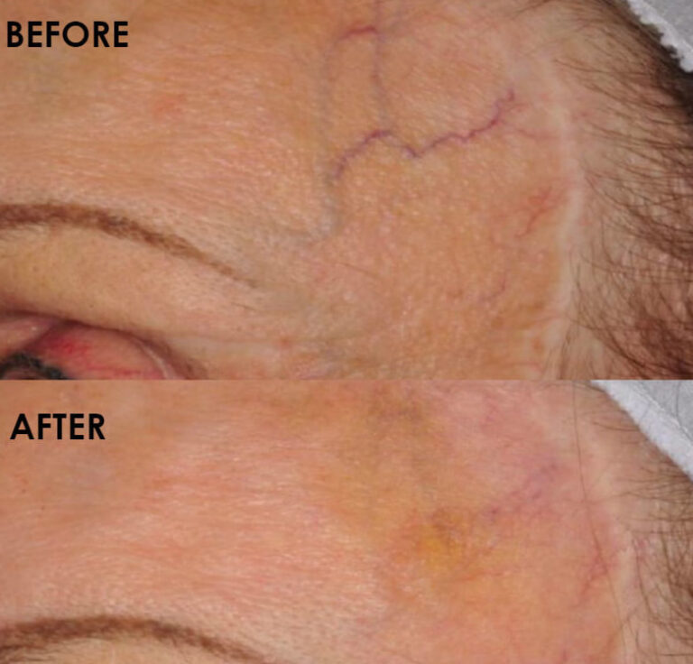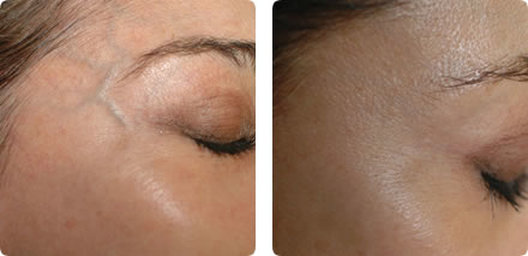 Until recently, little could be done for unsightly prominent veins in the periorbital and temple regions. These generally show up as blue lines: the vessels are bigger than the telangiectasis one sees on the cheeks and the nose. These vessels are almost always genetic in nature and are not related to exposure to the elements.