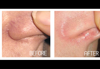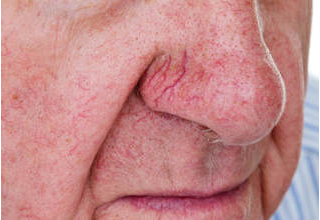 More than 80% of women will develop prominent vessels in these alar grooves and also within the nostrils. These are more prominent with advanced sun damage and after menopause. They can be difficult to cover with makeup. However, fine medium and long wavelength lasers (532 nm, 940 nm, 1964 nm) can be safely used to improve these vessels.