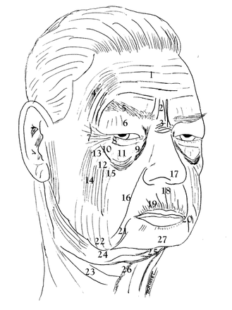 - Solar elastosis, loss of facial fat, cheek rhytids