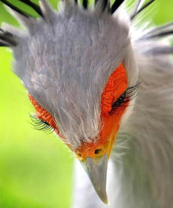 The Secretary Bird (Sagittarius serpentarius) of the African Savannah may have beautiful lashes but it hunts its prey on foot, and at 4 feet tall, can be an intimidating sight: beware the beauty that beckons you uninvited……