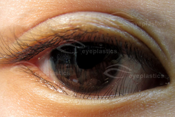 - A horizontal fold of skin adjacent to either the upper or lower lid Tolerated well by the cornea