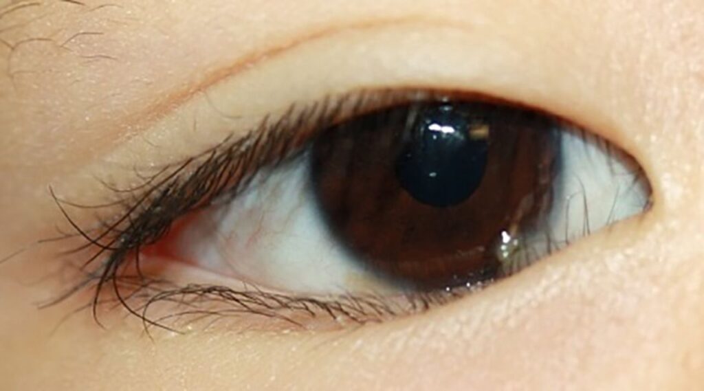 - The stagnant tears within the “tear duct” often become infected causing pus (heavy matter) to collect between the eyelids.