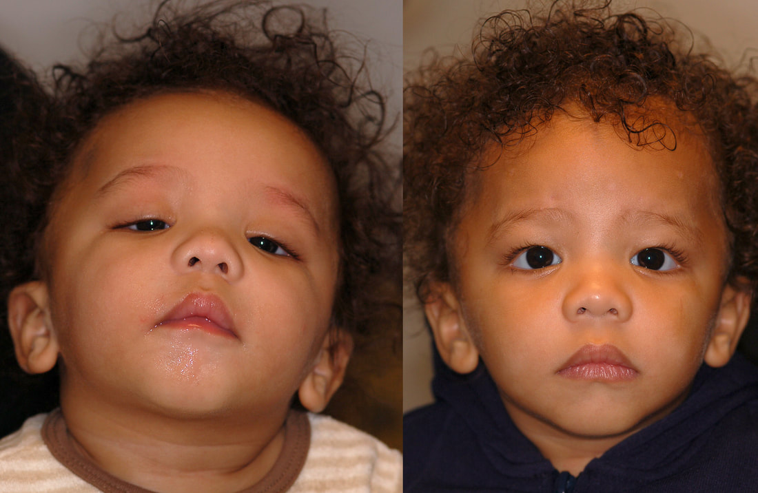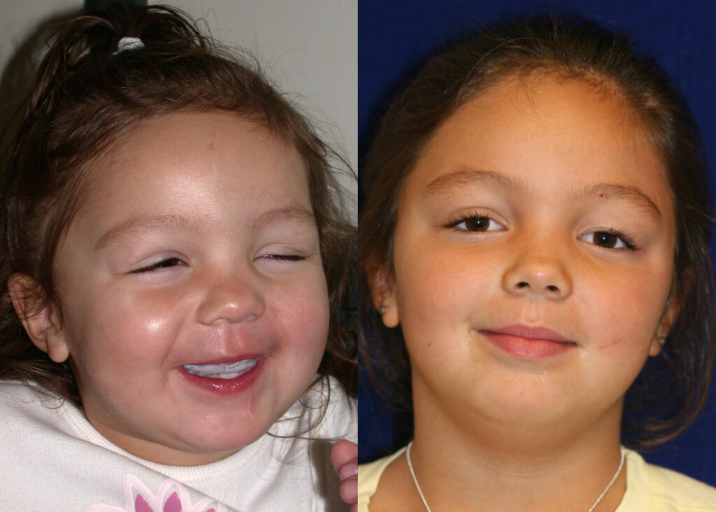 When a direct incision is made to lift the eyelid, the incision is hidden in where a natural crease would form. All children heal with a pink scar initialy, but this is almost invisible after a few months. After frontalis slings, the incisions become almost invisible within a few months as we make very small incisions using a technique that we developed at the University of Utah and have taught to surgeons from all over the world. We take pride in our “small-incision” frontalis slings with minimal scars, unlike the way the surgery is performed in many other centers. It is normal to feel small bumps under the skin after frontalis slings as the sling material is attached to the frontalis muscle: however, these are rarely visible.