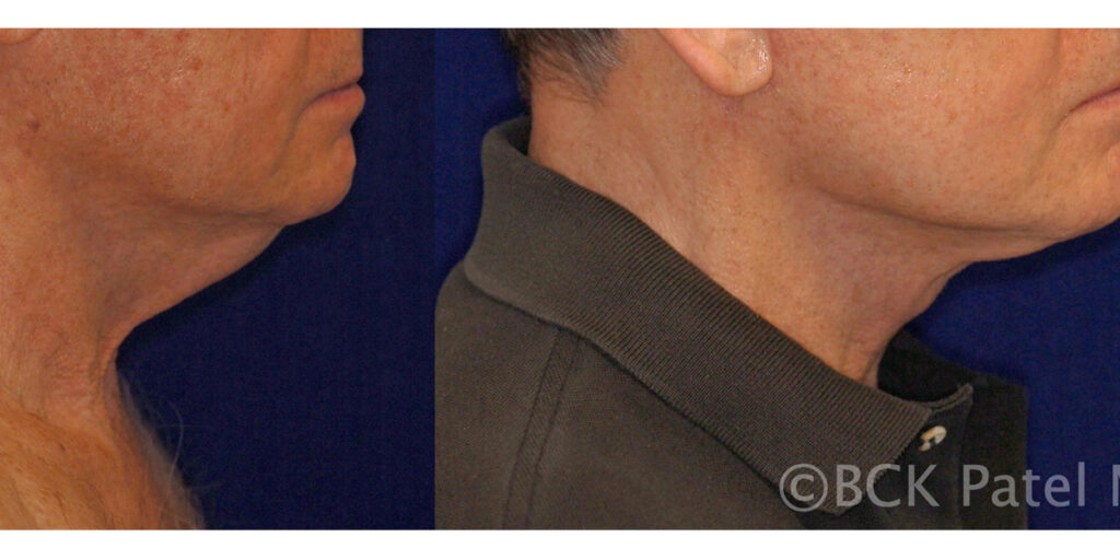 Liposuction of the neck and the jawline is judiciously peformed to get a defined neck and jawline (see the before-and-after photographs, which illustrate the improvement of various different kinds of faces).
