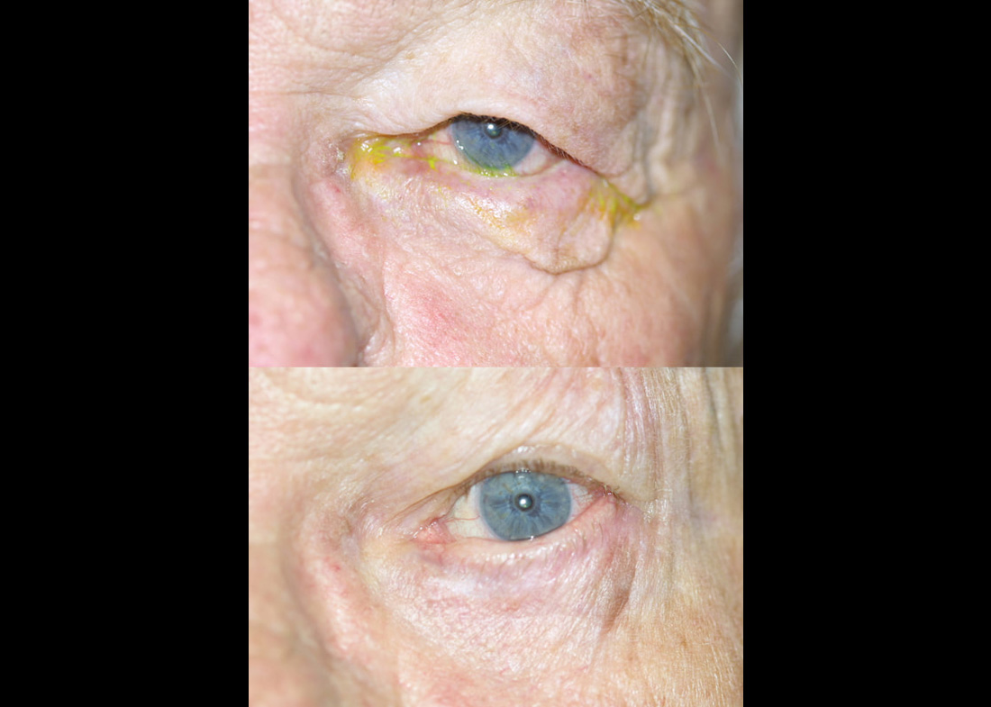 Healing eyelids always make the tear gland produce more tears and the tears will be thicker than normal, often with some mucous. This is NORMAL and not a sign of infection. When grafts are used (skin grafts, alloderm grafts, etc), this discharge may persist for a few weeks but gradually reduce and then stop. We will be prescribing an antibiotic ointment which you will apply three times a day to the lower eyelid & the outer corner of the lower eyelid (sometimes also the inner corner, depending upon the procedure performed). You will use this ointment for one to two weeks. We will guide you.