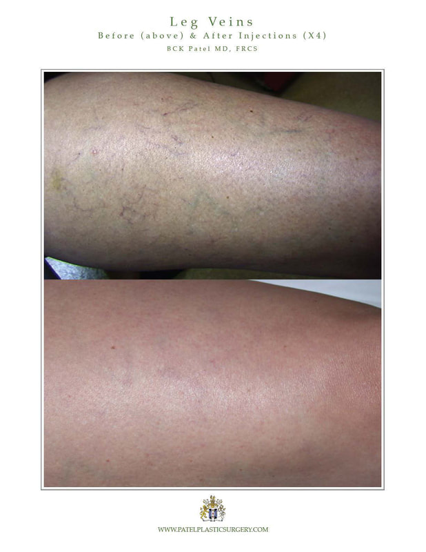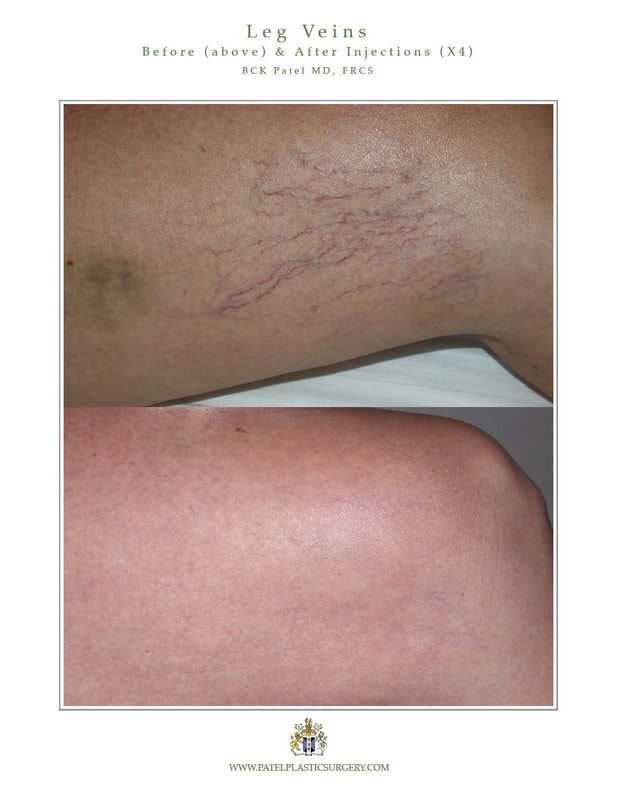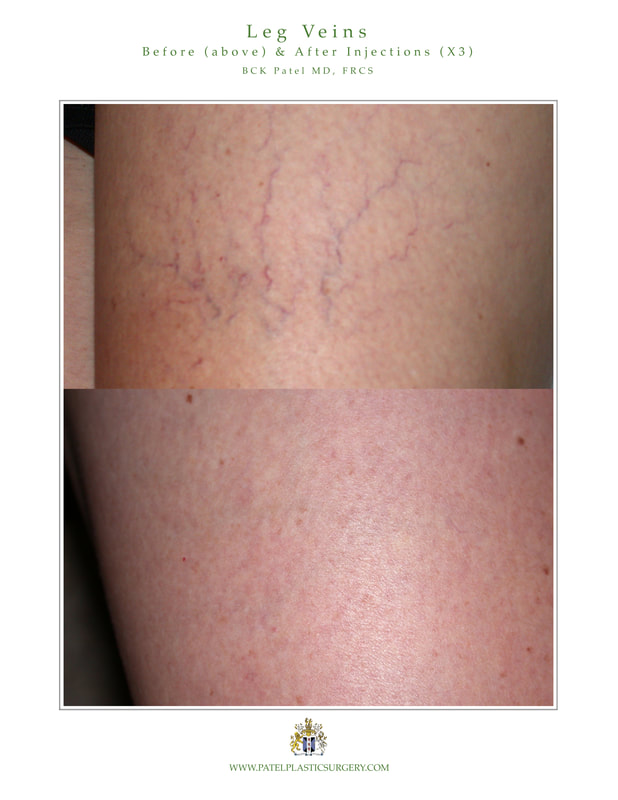These can be successfully treated using a number of sclerosing agents. Most patients need a series of treatments separated by a few weeks: this will vary depending upon the severity of the veins and the distribution. Once the series is completed, a maintenance treatment once a year is often wise.