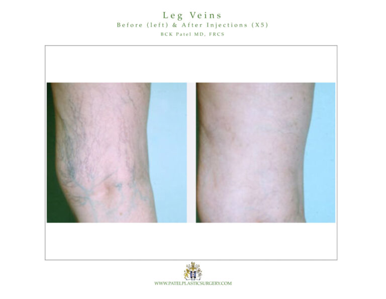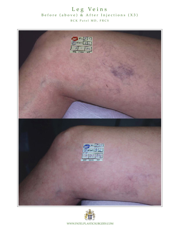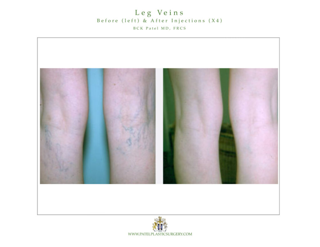 Sclerotherapy is injections of a gentle solution using an acupuncture-sized needle into the blood vessels. This irritates the inside of the vessel and causes them to shrink and slowly disappear. A number of different solutions are used for sclerotherapy including a concentrated sugar solution (glycerin), a very dilute, mild detergent solution, sodium tetradacyl, polidochonol and hypertonic saline. An experienced surgeon will use one or more of these to give you the best results.