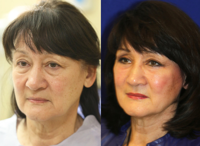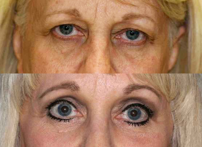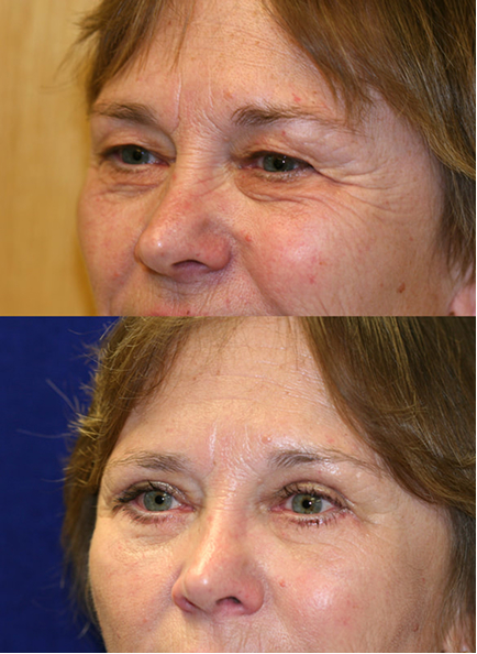 This lady, for example, wanted to look less tired with an endoscopic brow lift and upper and lower blepharoplasty, which worked very well.