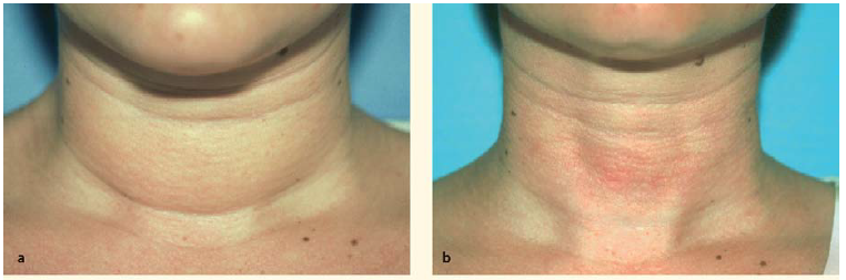 Examination of the neck structures as described under the “Conditions” Neck section will allow one to determine if an isolated neck rejuvenation procedure is a reasonable option. It is important to remember that with the neck, tissue restitution occurs: this is a concept that is not well-known in plastic surgery or, is at least not well appreciated. Essentially, what you see immediately after surgery is NOT what you get in the medium or long term. The skin of the neck and décolleté is prone to develop fine lines, deep-set lines, loss of skin elasticity and discoloration. Neck skin is thinner than facial skin.
