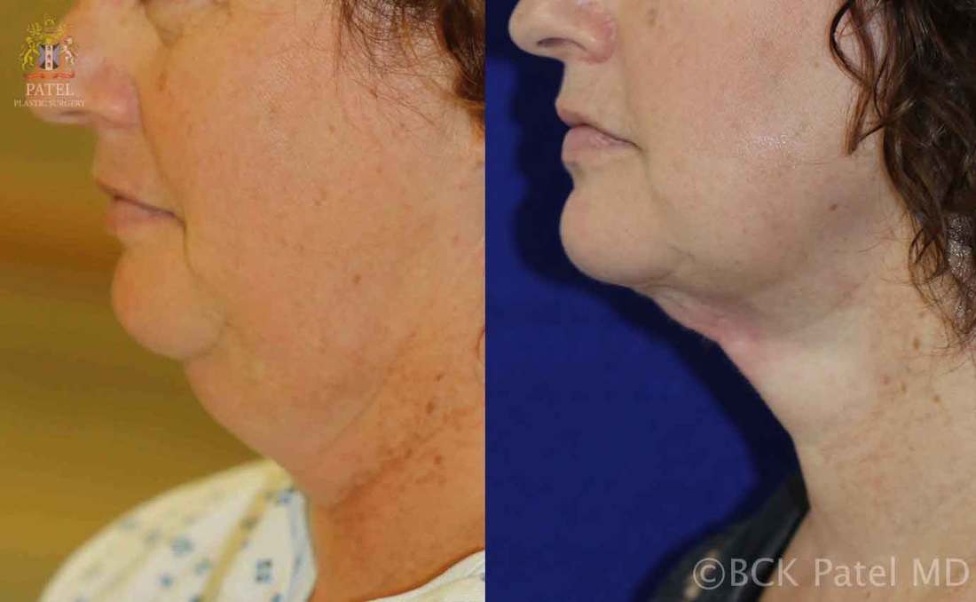 This patient wanted a more defined jawline and less full of a neck. Liposuction alone was used here to give her more definition of the jawline, a better defined neck, and more prominence to the chin and lower face without a facelift or necklift. She had very good skin tone, which is why we were able to just perform a neck liposuction.