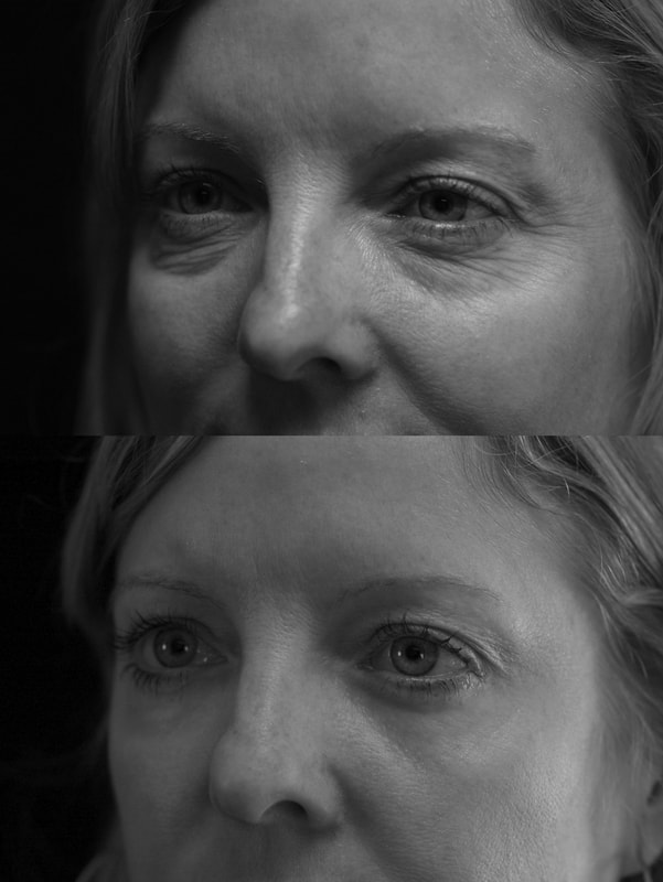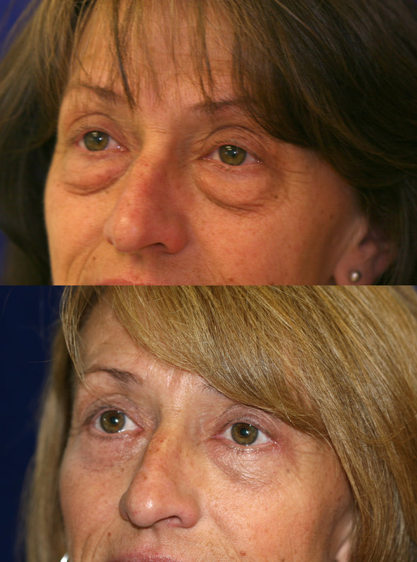 Though both under the eyes, these are two separate concerns. Under-eye bags occur with puffiness or protrusion of tissue. Dark circles (which I also treat) are specifically the appearance of shadows under the eye.